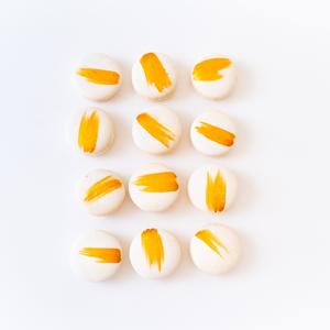 SOLD OUT6 Layers of cake, filled with chocolate ganache, finished with a unique marbled fondant and gold or silver leaf specs.