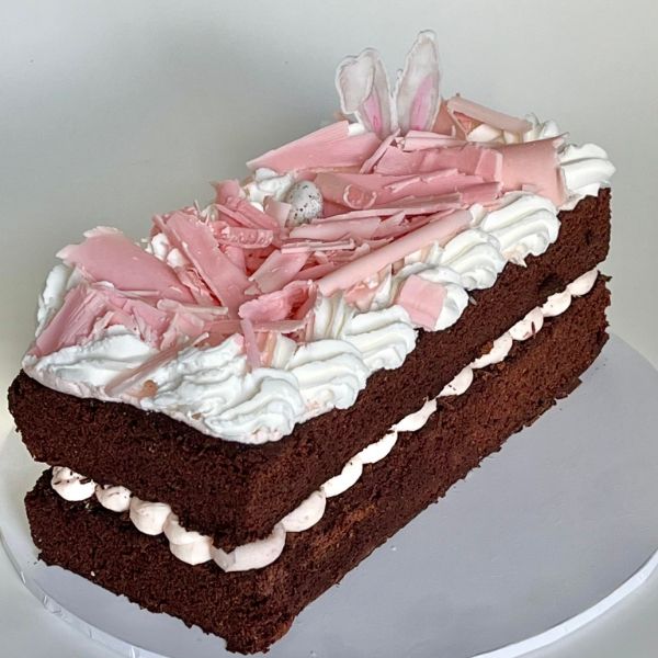 SOLD OUTYour Easter entertaining would not be complete without a delicious cake to adorn your table. Topped with chocolate shavings and bunny ear topper, this log style cake serves approx 10 dessert/ 20 coffee serves, easy to slice and serve.